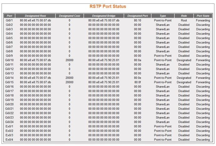 - Forwarding—specifies that the port is in Forwarding state i.e.