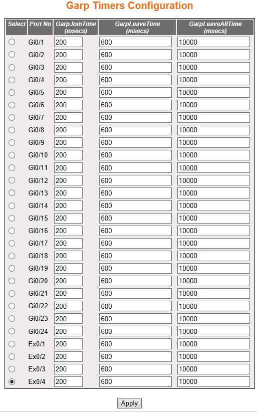 (msecs)—enter the time duration till which a GARP participant must wait for