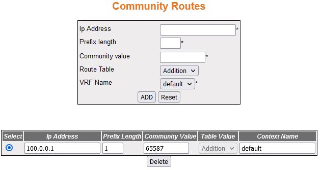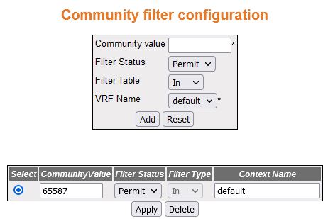 This screen allows the user to configure RFD (Route Flap Dampening) parameters. |